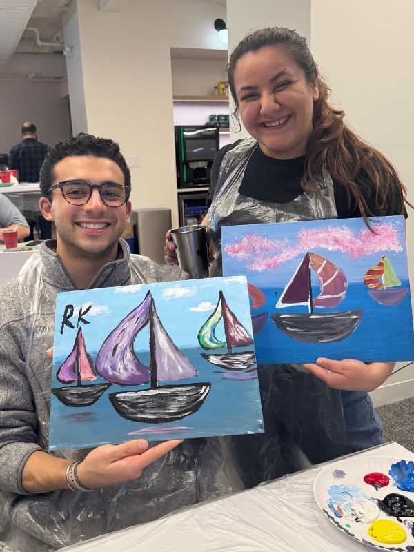 A virtual paint and sip session allows coworkers to unwind, chat, and interact outside of their normal, high-stress work-related tasks.